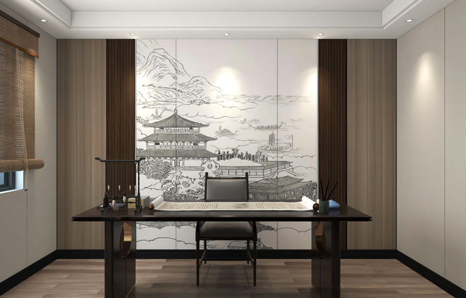 Parede de fundo de estudo em casa - novo estilo chinês